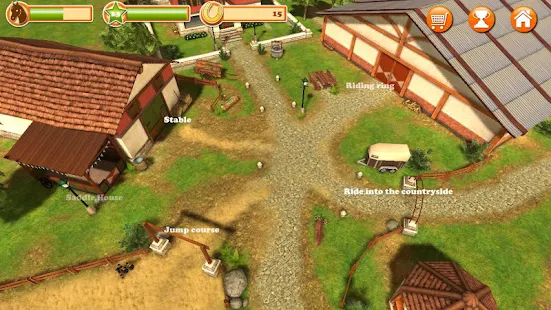 After you've groomed your horse, you'll get a riding lesson. In the course you'll show your skill at riding, try to follow the riding line as closely as possible and thereby try to achieve the best time.