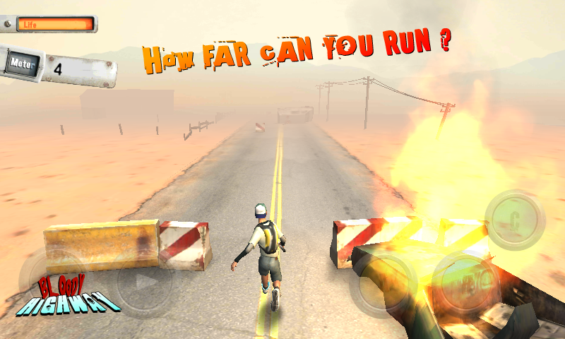 Your car is broken, you can't drive any further. From now the only way to survive on the road is to take your baseball bat and run. How long can you stay alive on the highway full of zombies, crashed cars and the other deadly obstacles ?