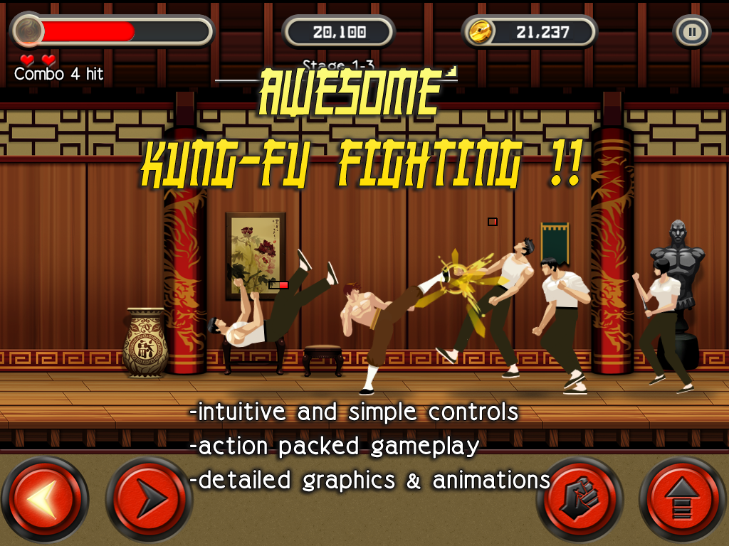 You're a kung fu fighter who travelled back in time to stop the evil plan that can ruin the world. Do you have what it takes to beat the evil Chong Lee?